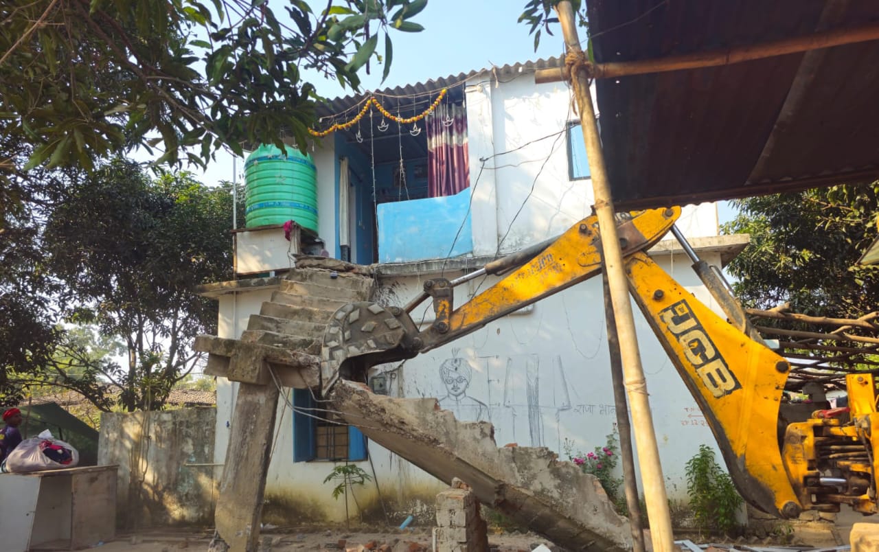 भानुप्रतापपुर ब्लाक के ग्राम पंचायत बांसला में सामुदायिक भवन के ऊपर बने मकान को लेकर गुरुवार को पंचायत एवं प्रशासन की संयुक्त टीम ने कार्रवाई की। इस दौरान सामुदायिक भवन एवं उसके ऊपर बने मकान से सारा सामान बाहर निकलवाया गया तथा भवन में बनी सीढ़ी और सामने डाले गए शेड को जेसीबी मशीन से तोड़ दिया गया।